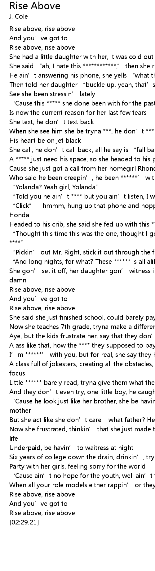 | [00:05.97] | Rise above, rise above |
