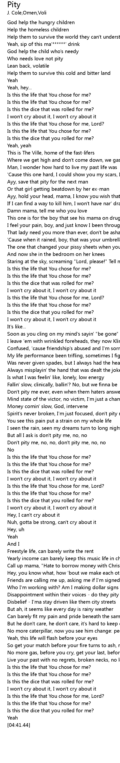 | [02:45.62] | But all I ask is don't pity me, no, no |