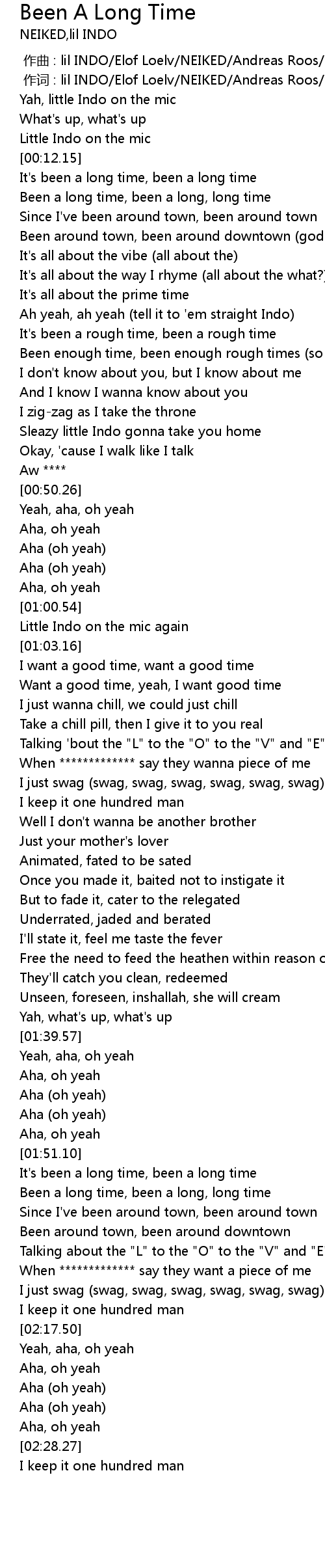 | [00:29.17] | Ah yeah, ah yeah (tell it to 'em straight Indo) |