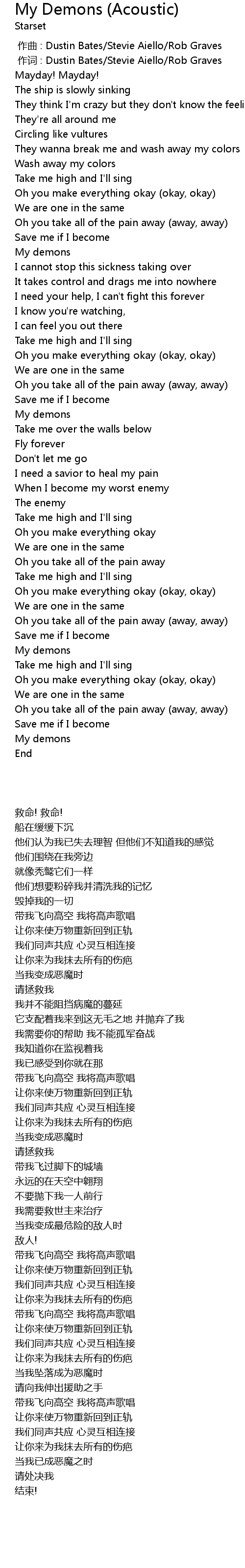 | [00:00.196] | 作词 : Dustin Bates/Stevie Aiello/Rob Graves |
