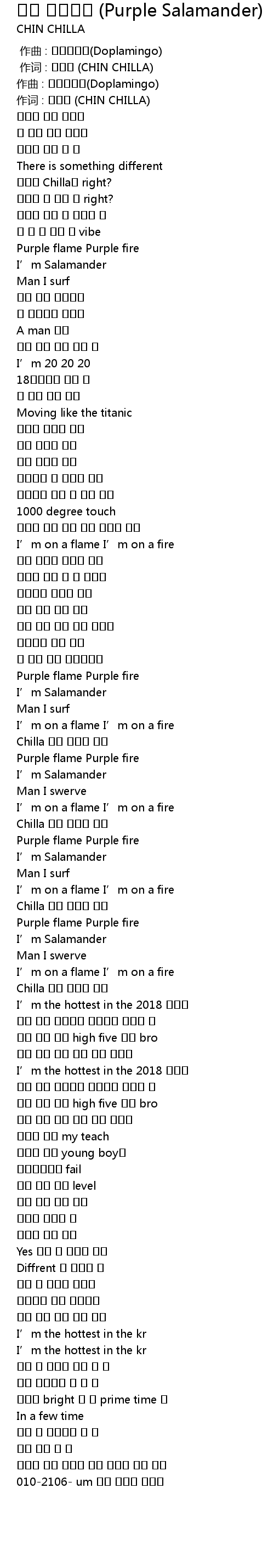 | Song | 퍼플 샐러맨더 (Purple Salamander) |