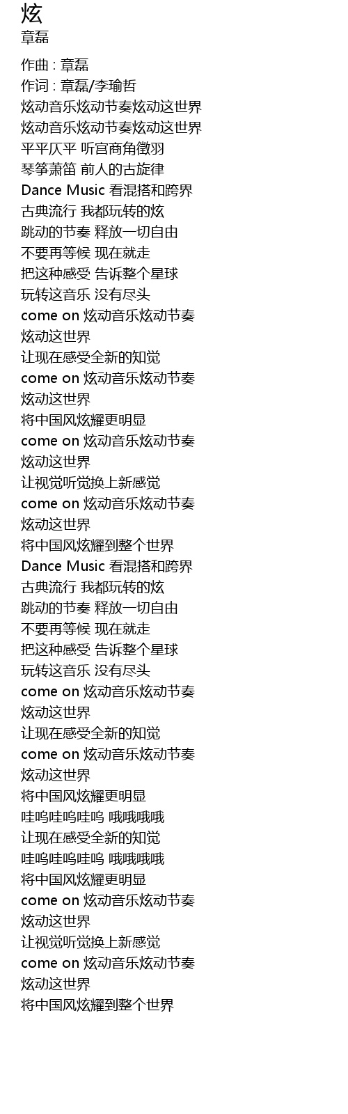 | 作词 : 章磊/李瑜哲 | |