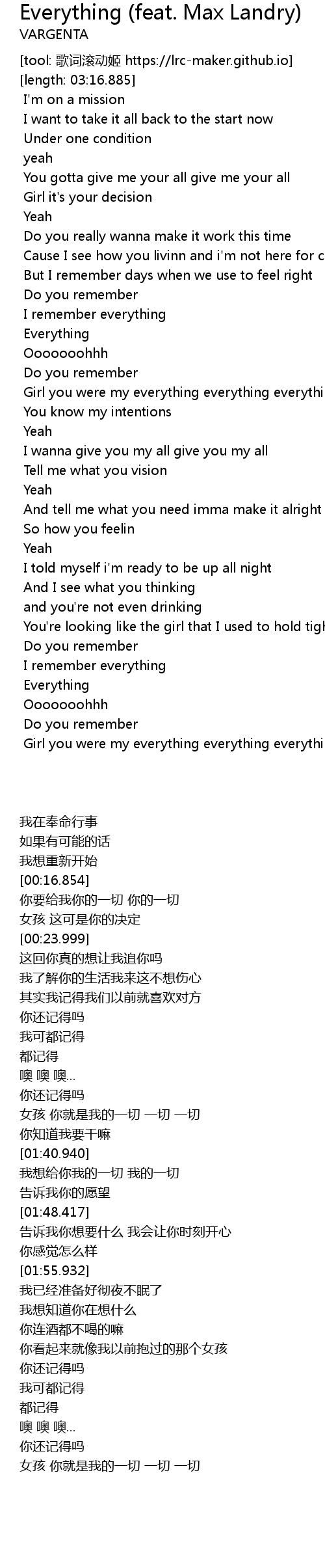 | [02:19.919] | Girl you were my everything everything everything |