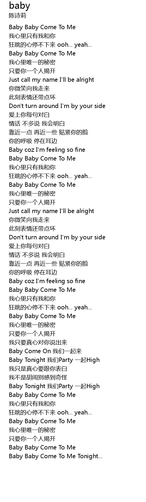 | [01:58.89] | Baby Baby Come To Me |