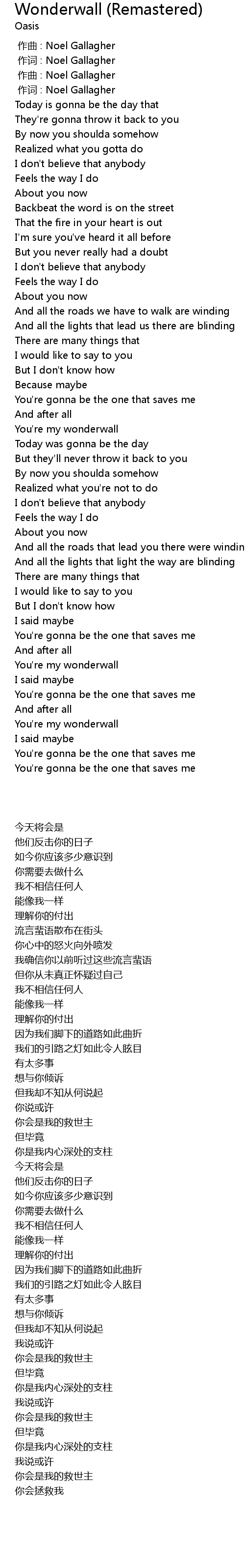 | [00:00.00] | 作曲 : Noel Gallagher |