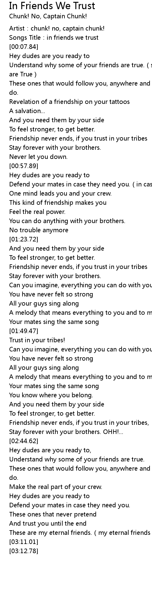 | [00:47.09] | Friendship never ends, if you trust in your tribes |