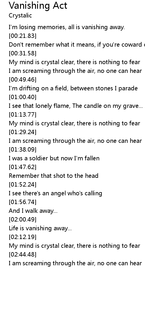 I'm losing memories, all is vanishing away. |