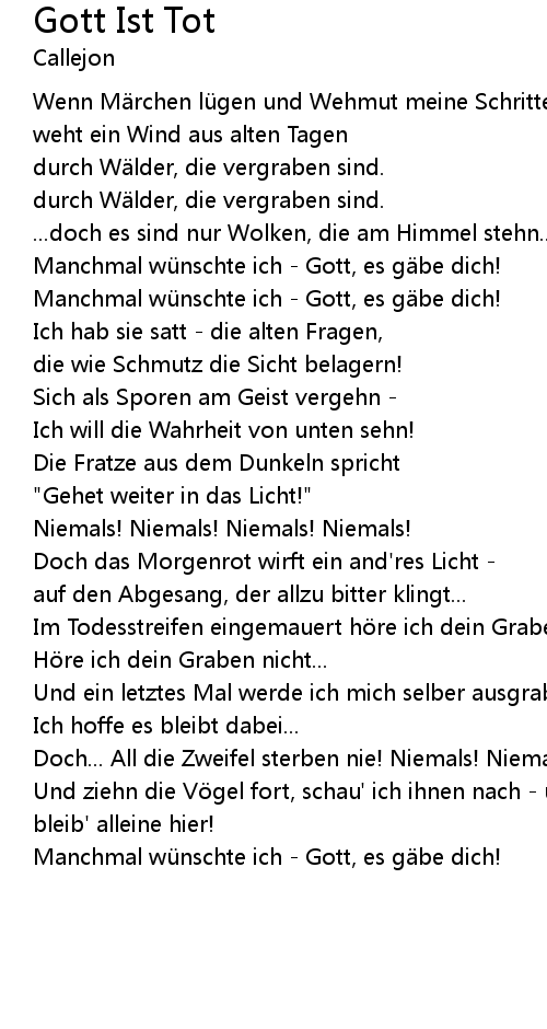 | Manchmal wü nschte ich Gott, es g be dich! | |