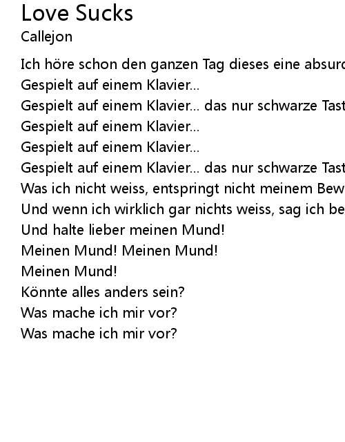 | Ich h re schon den ganzen Tag dieses eine absurde Lied, | |