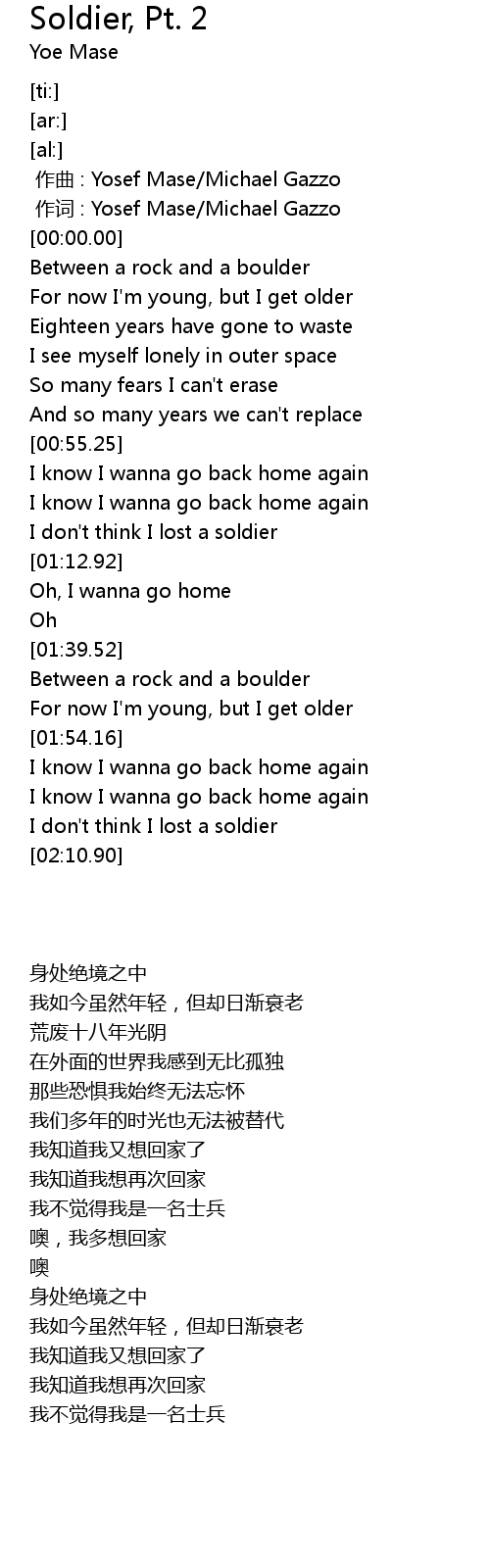 | [00:00.000] | zuo ci : Yosef Mase Michael Gazzo |