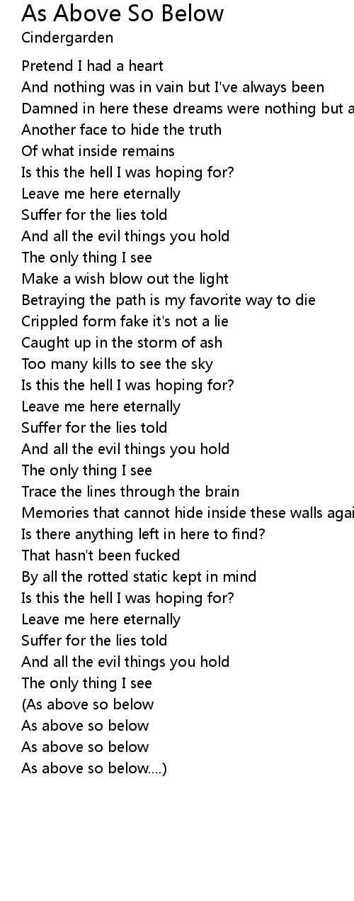 (As above so below |