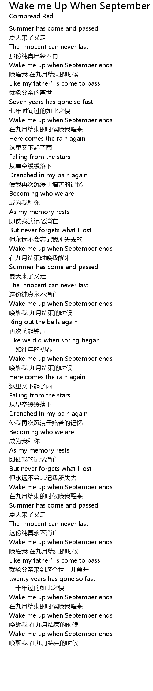 | zài jiǔ yuè jié shù shí huàn wǒ xǐng lái | |