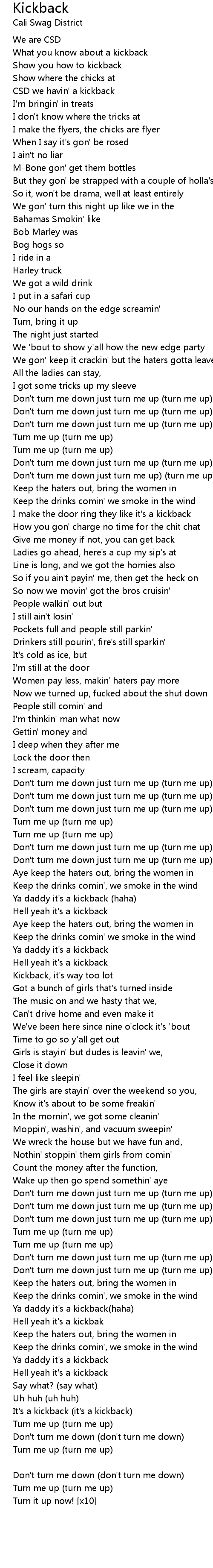 Turn it up now! [x10] |