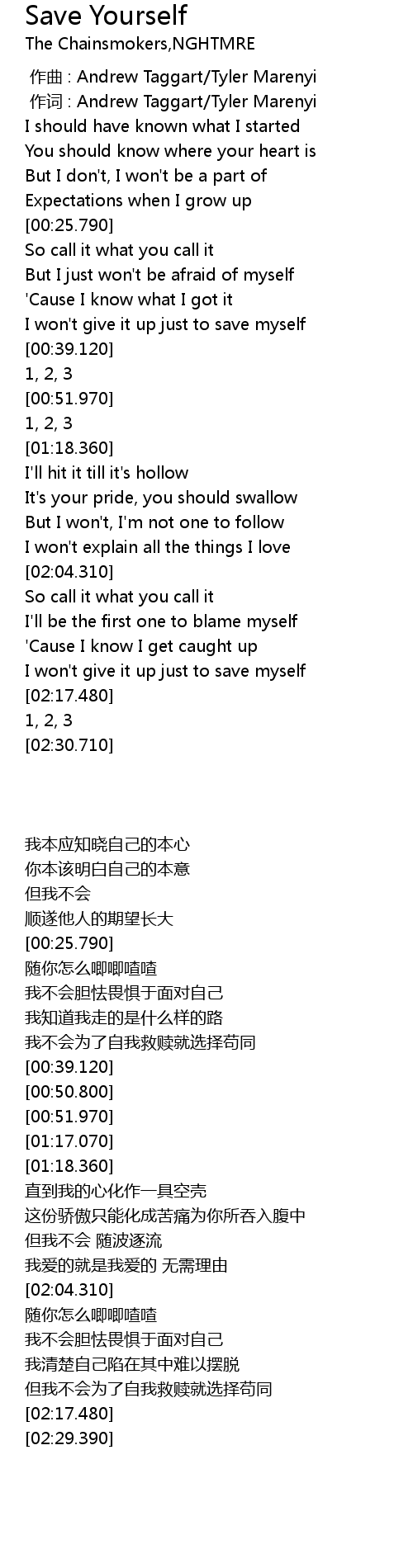 | [00:01.000] | 作词 : Andrew Taggart/Tyler Marenyi |