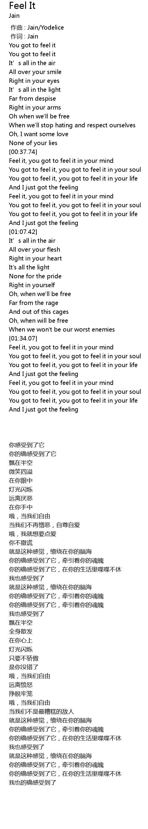 | [00:09.34] | You got to feel it |