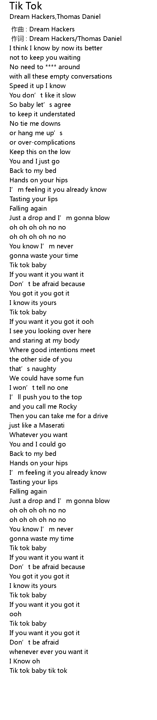 | [03:00.20] | Tik tok baby |