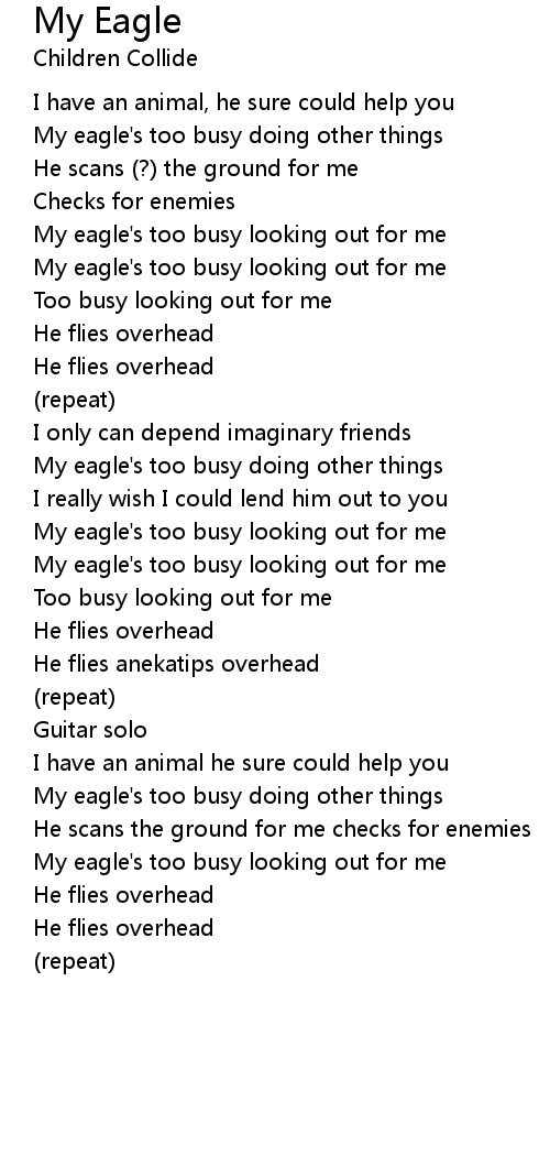 My eagle's too busy looking out for me |