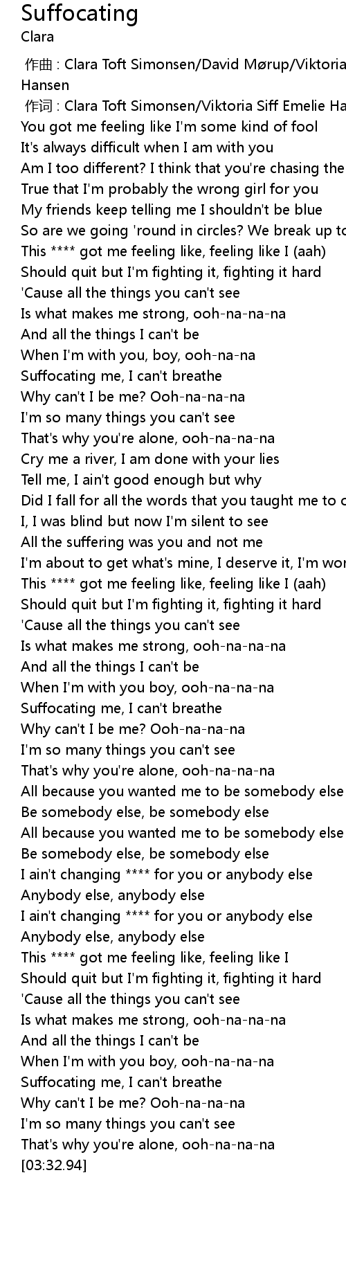 | Song | Suffocating |
