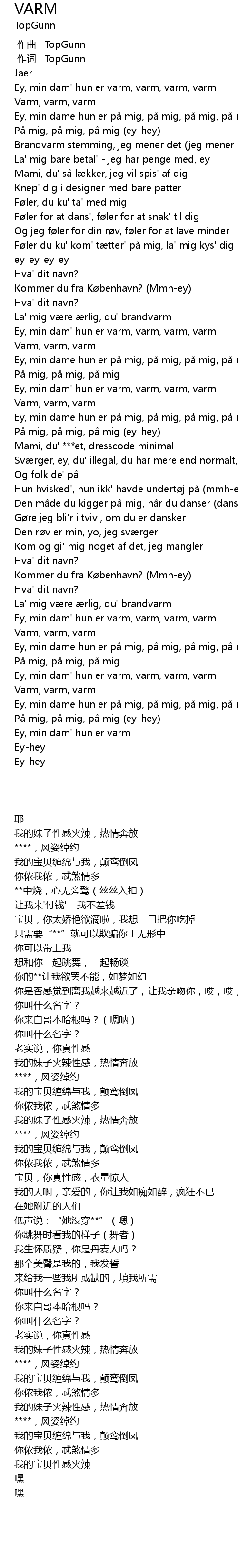 | [00:08.60] | Ey, min dam' hun er varm, varm, varm, varm |