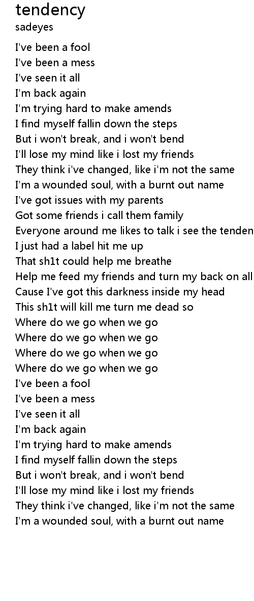 | [00:35.441] | I'm a wounded soul, with a burnt out name |