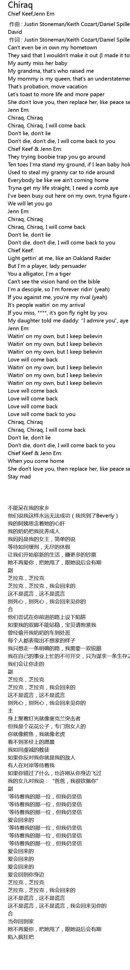 | [03:11.000] | Chiraq, Chiraq, I will come back |