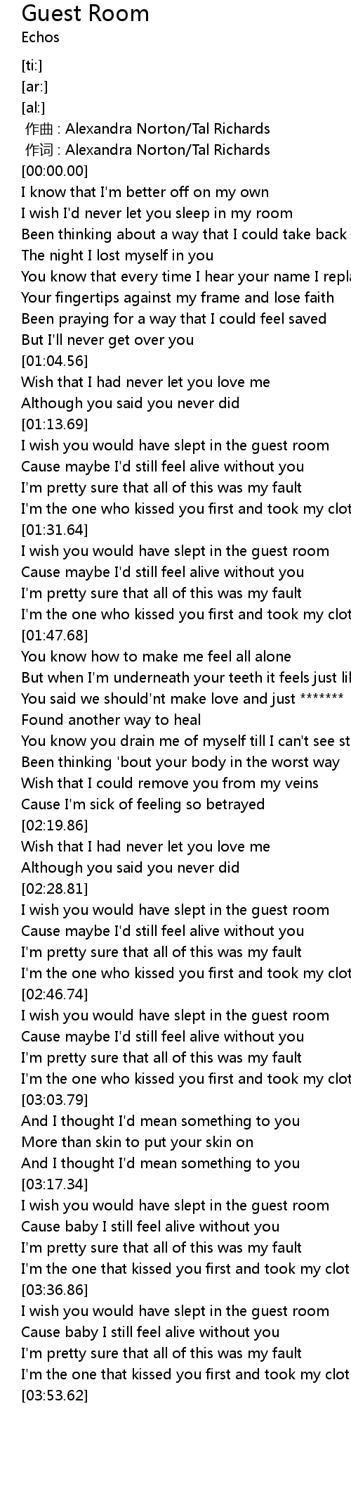 | [00:36.63] | I wish I'd never let you sleep in my room |