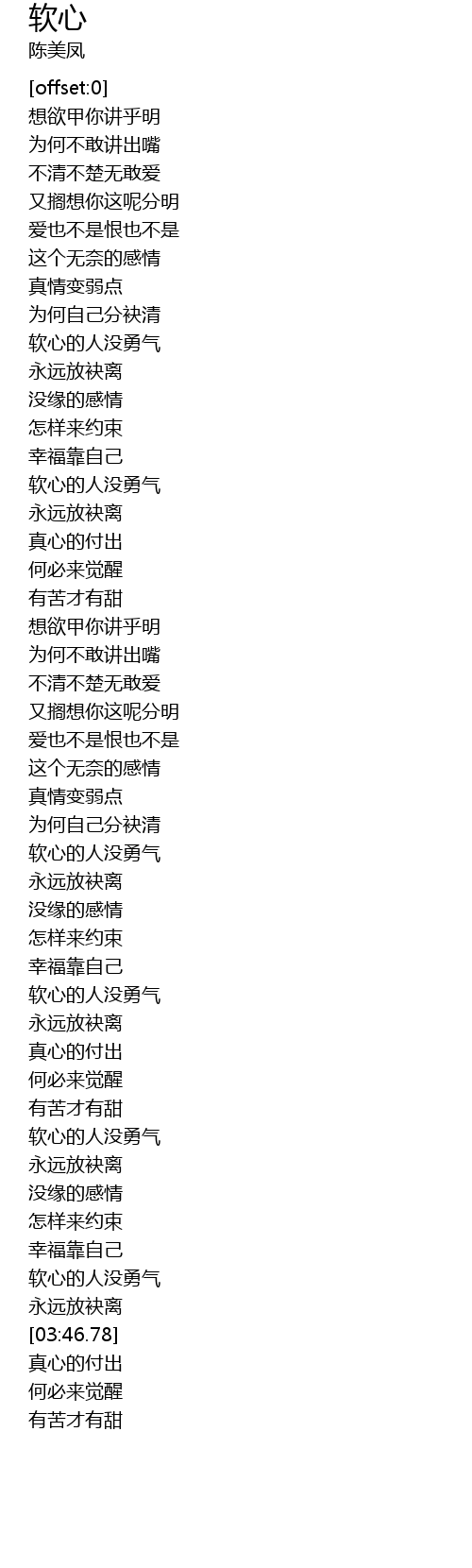 | [03:23.37] | 软心的人没勇气 |