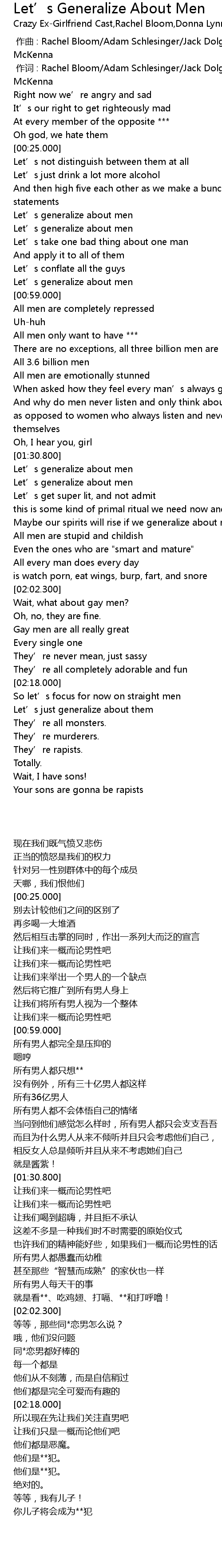 | [00:01.000] | 作词 : Rachel Bloom/Adam Schlesinger/Jack Dolgen /Aline Brosh McKenna |