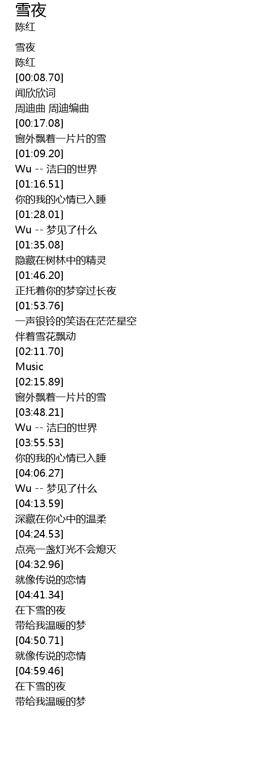 | [04:42.03] | 在下雪的夜 |