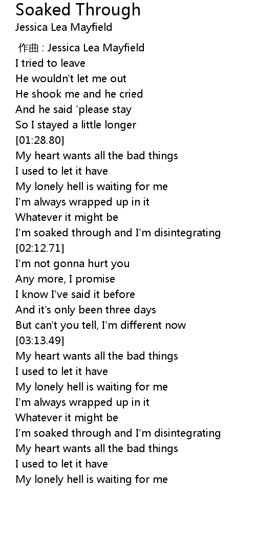 | [02:05.58] | I'm soaked through and I'm disintegrating |