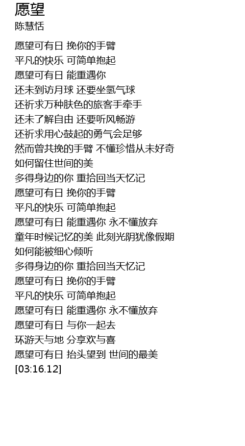 | [02:53.16] | 愿望可有日 与你一起去 |