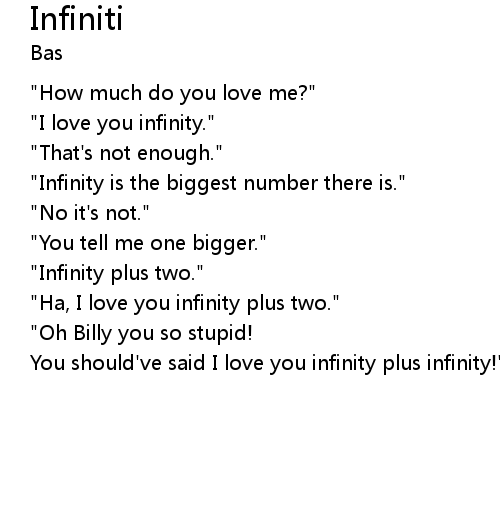 | [00:08.41] | "Infinity is the biggest number there is." |