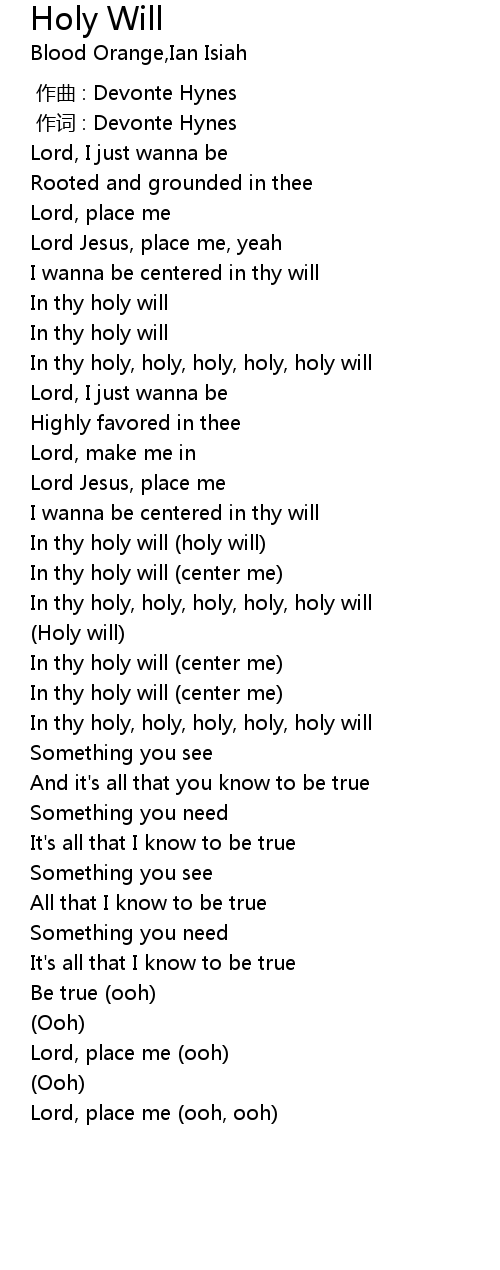 | [02:54.41] | In thy holy, holy, holy, holy, holy will |