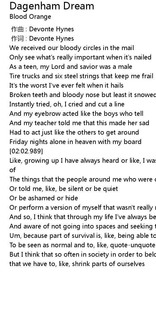 | [00:01.000] | 作词 : Devonte Hynes |
