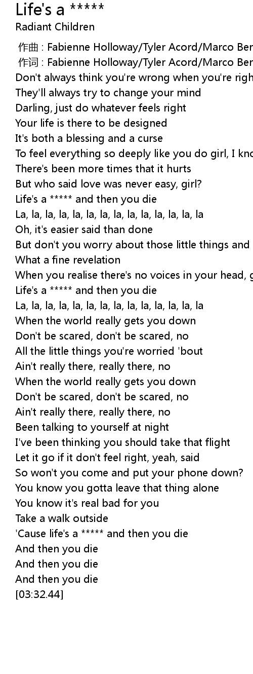 | [01:40.77] | Life's a ***** and then you die |