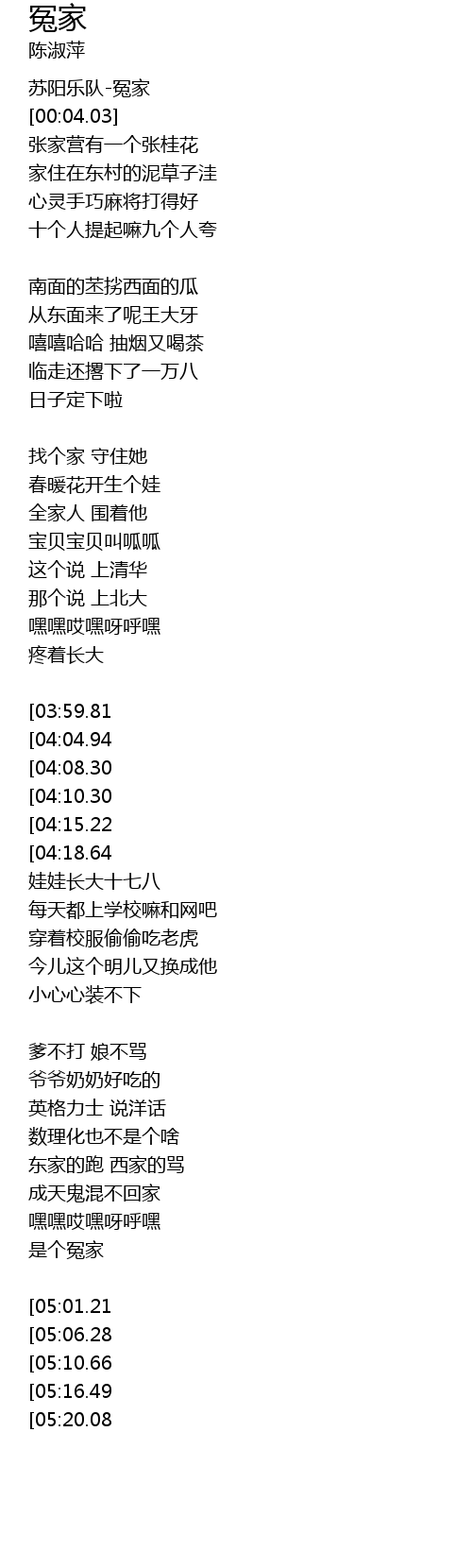 | [04:56.04][04:15.22][02:30.47][02:10.04] | 儿女都是冤家 |