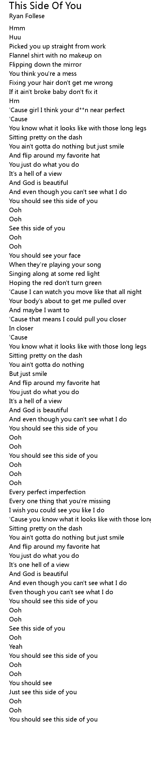 'Cause girl I think your d**n near perfect |