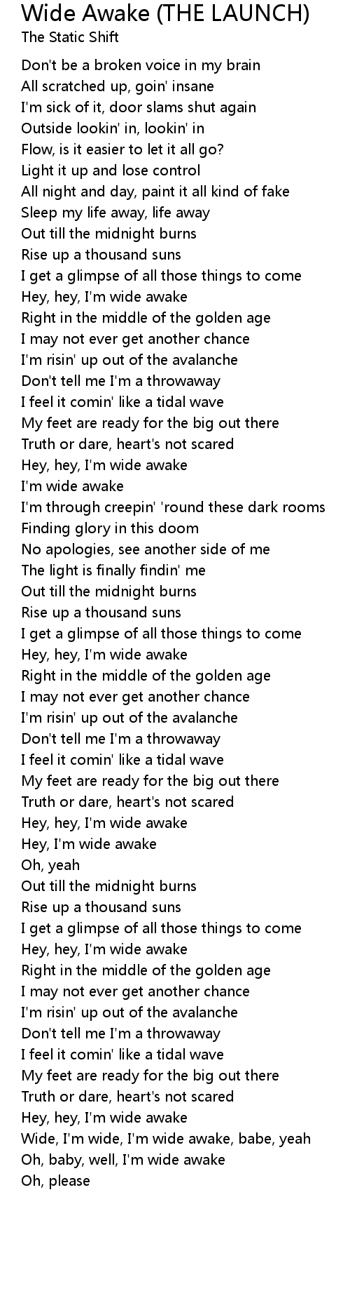 Wide, I'm wide, I'm wide awake, babe, yeah |
