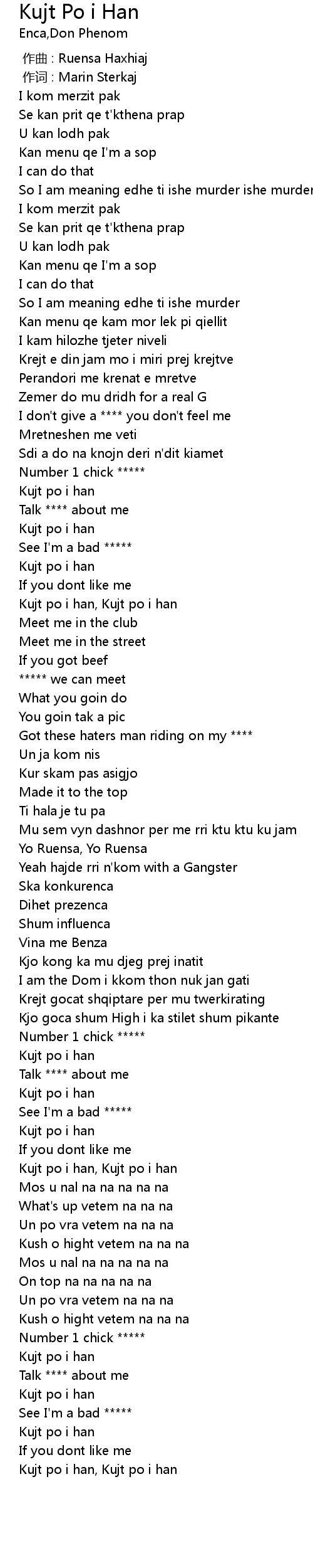 | [01:49.38] | Yeah hajde rri n' kom with a Gangster |