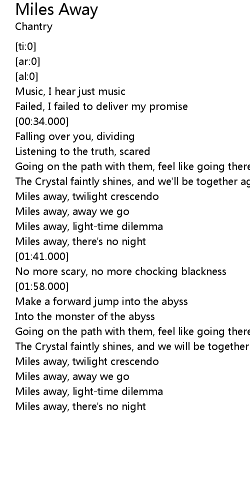 | [03:14.800] | Miles away, away we go |