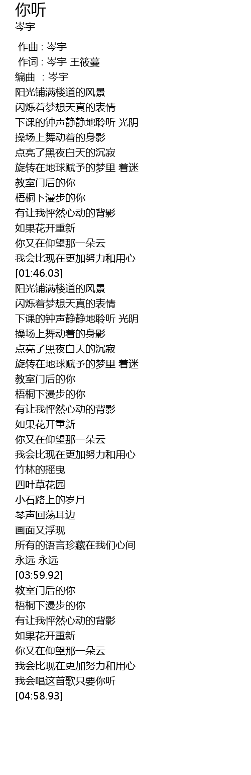 | [00:00.000] | 作曲 : 岑宇 |