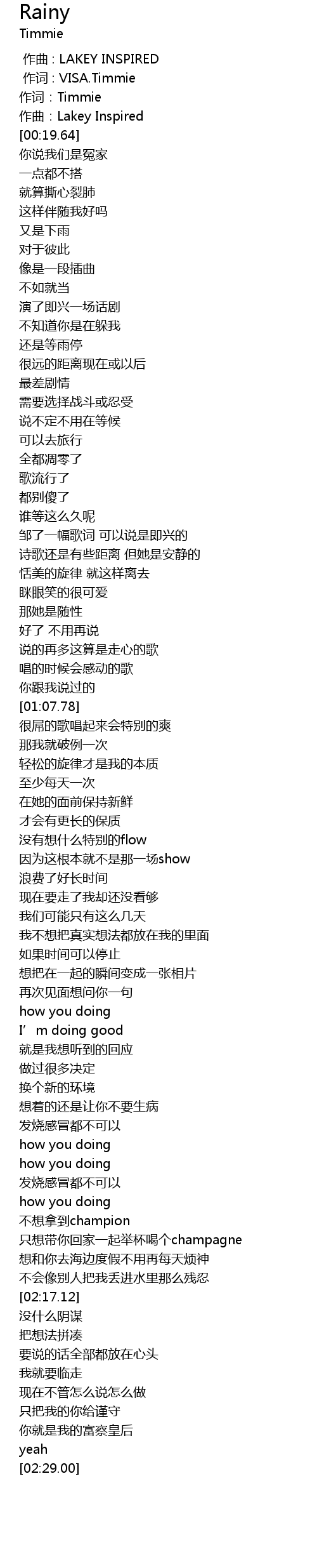 [00:01.000] 作词 : VISA.Timmie
