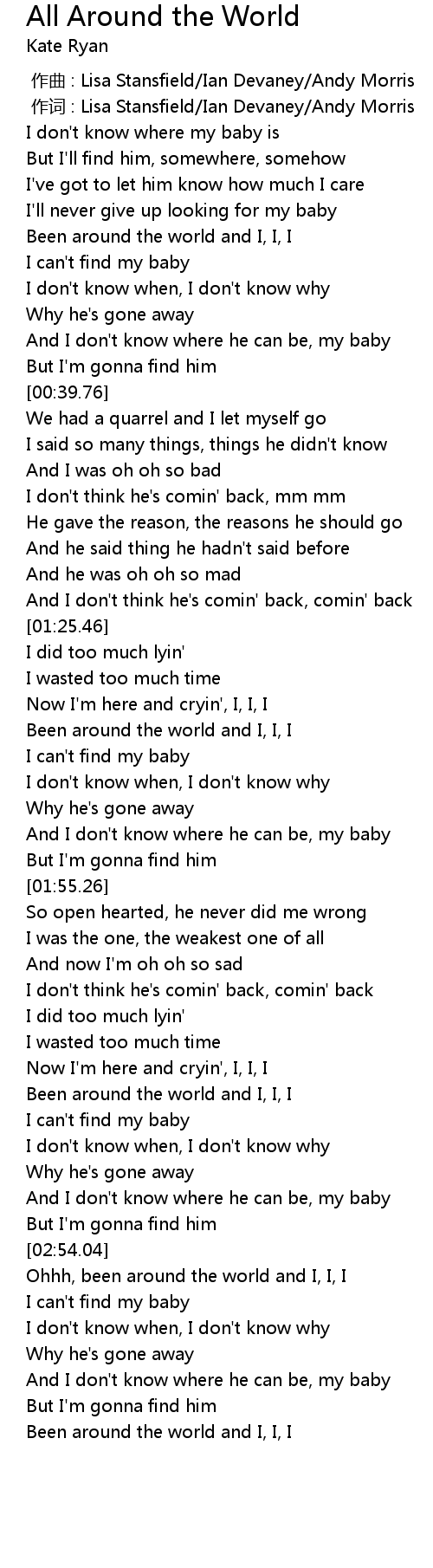 | [01:37.43] | Been around the world and I, I, I |