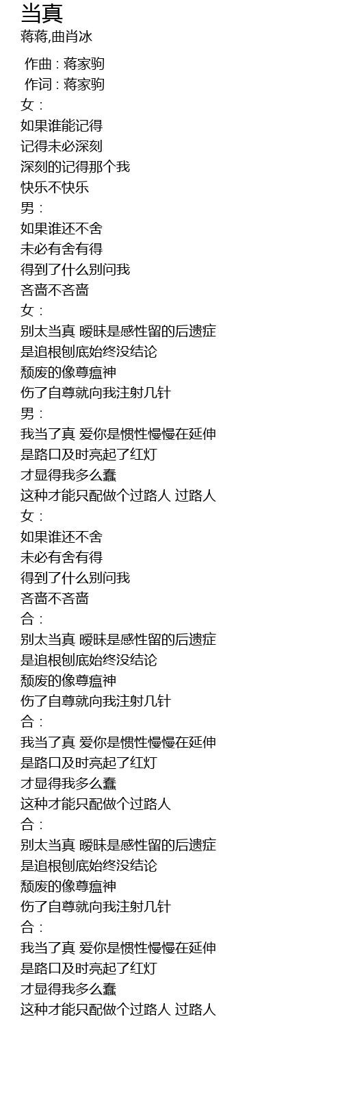 | [02:45.92] | 我当了真 爱你是惯性慢慢在延伸 |