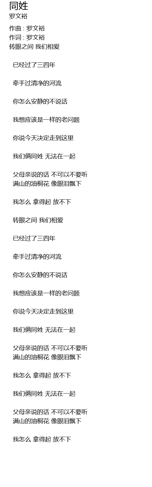 | 我们俩同姓 无法在一起 | |