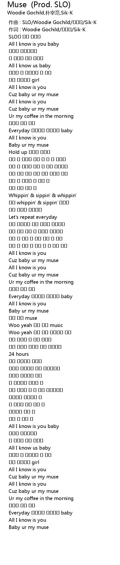 | [00:00.000] | 作曲 : SLO/Woodie Gochild/박재범/Sik-K |