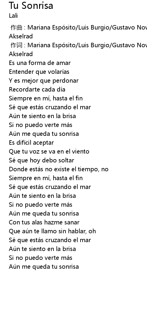 | [00:00.000] | zuo qu : Mariana Espo sito Luis Burgio Gustavo Novello Pablo Akselrad |