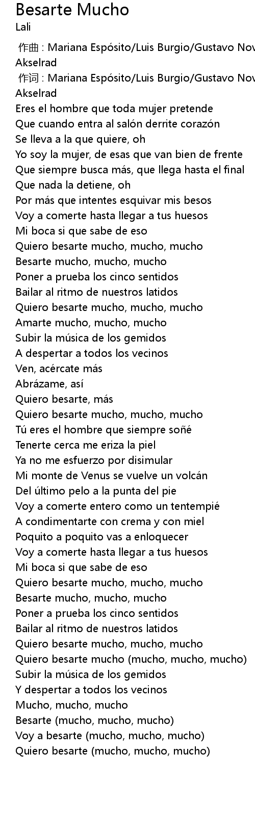 | [02:43.49] | Quiero besarte mucho (mucho, mucho, mucho) |