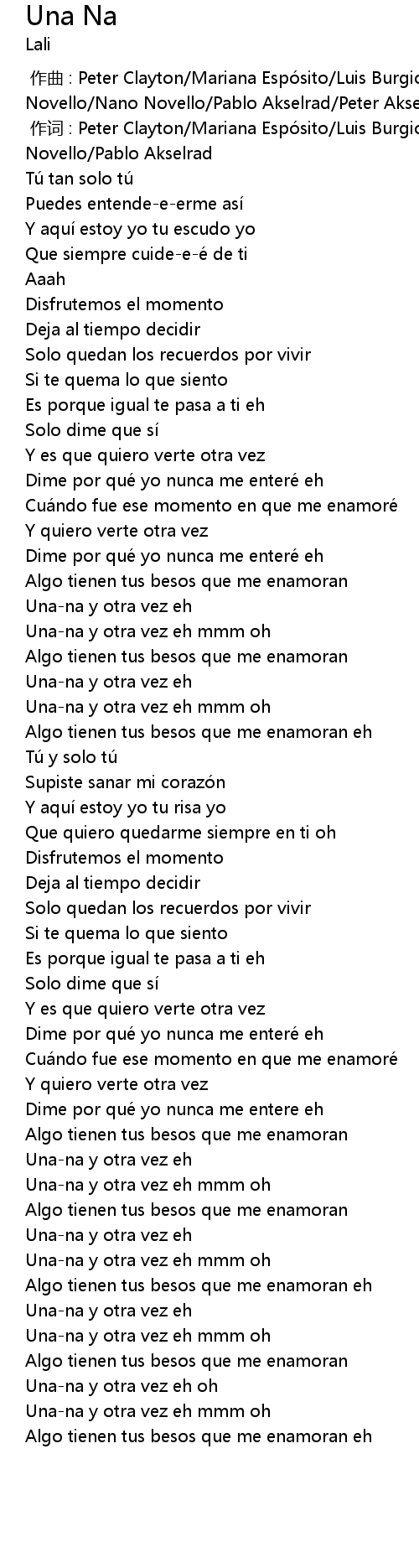 | [00:01.000] | 作词 : Peter Clayton/Mariana Espósito/Luis Burgio/Gustavo Novello/Pablo Akselrad |