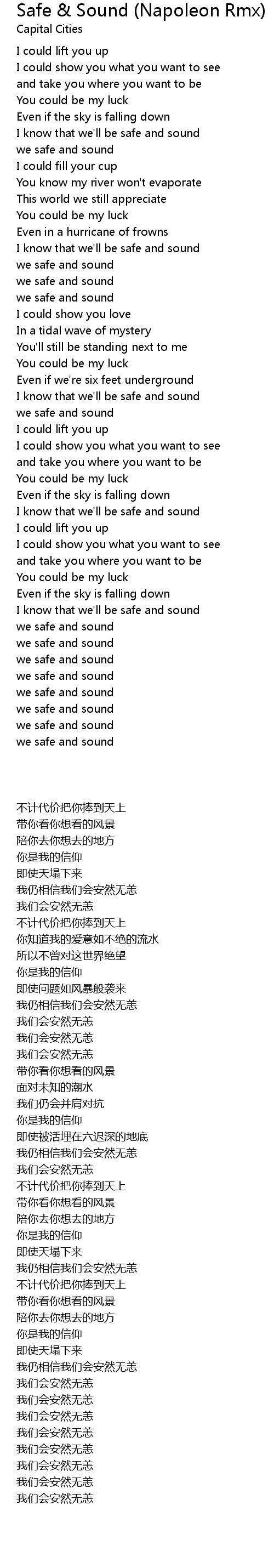 I know that we'll be safe and sound |